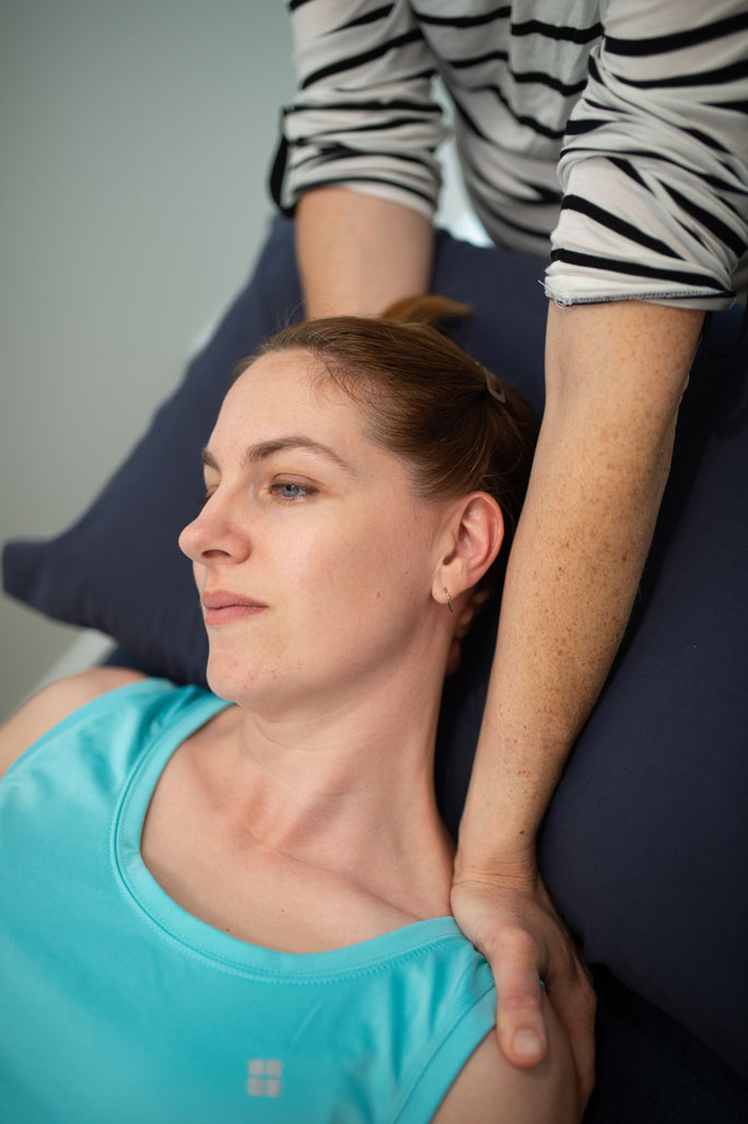 Treatment for neck pain, aside from posture correction, often includes massage, stretching, mobilising and dry needling to loosen tight structures.  Exercises for posture correction, upper body strength and deep neck muscles are also often prescribed.